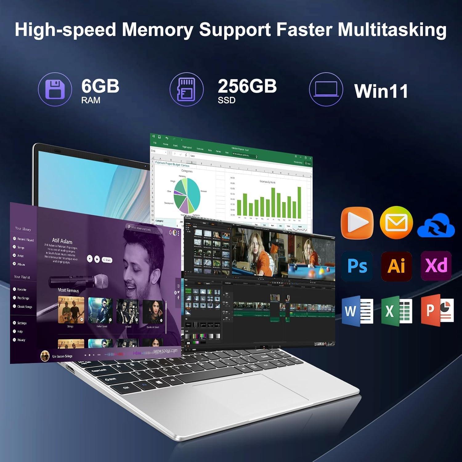 Unbeatable Performance: B5 Laptop Built-in 6GB LPDDR4 and 256GB SSD storage space boosts your performance. With M.2.2280 SATA expansion slot, Support up to 1TB SSD and 512GB Micro SD expansion. A Marvel of Technology for Your Digital Life. Experience seamless multitasking, rapid data access, and stunning visuals