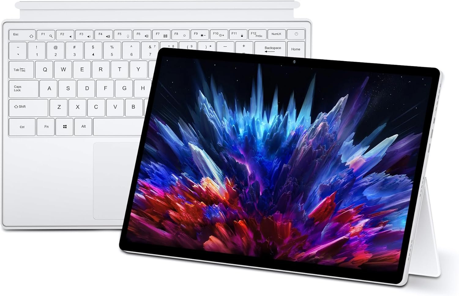 Tablet supports any angle fixation and comes with detachable backlit keyboard.