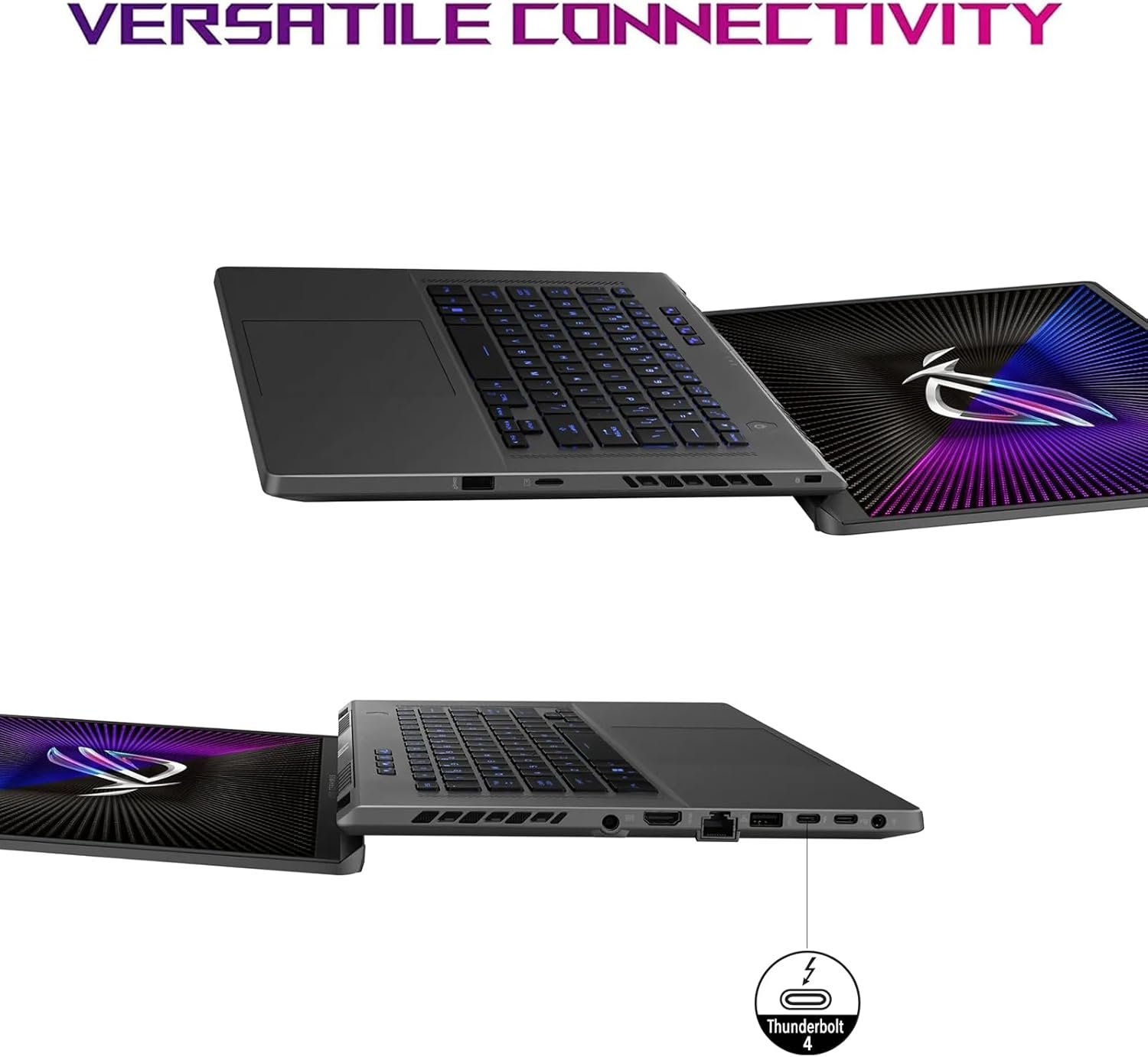 ?Tech Specs? ROG Zephyrus G16 is ripe with connectivity. With two USB 3.2 Gen 2 Type-C ports, two USB 3.2 Gen 2 Type-A ports, and an RJ45 LAN port, the machine has excellent options even for high-speed external devices. Wi-Fi 6E, Bluetooth, 720p IR Camera