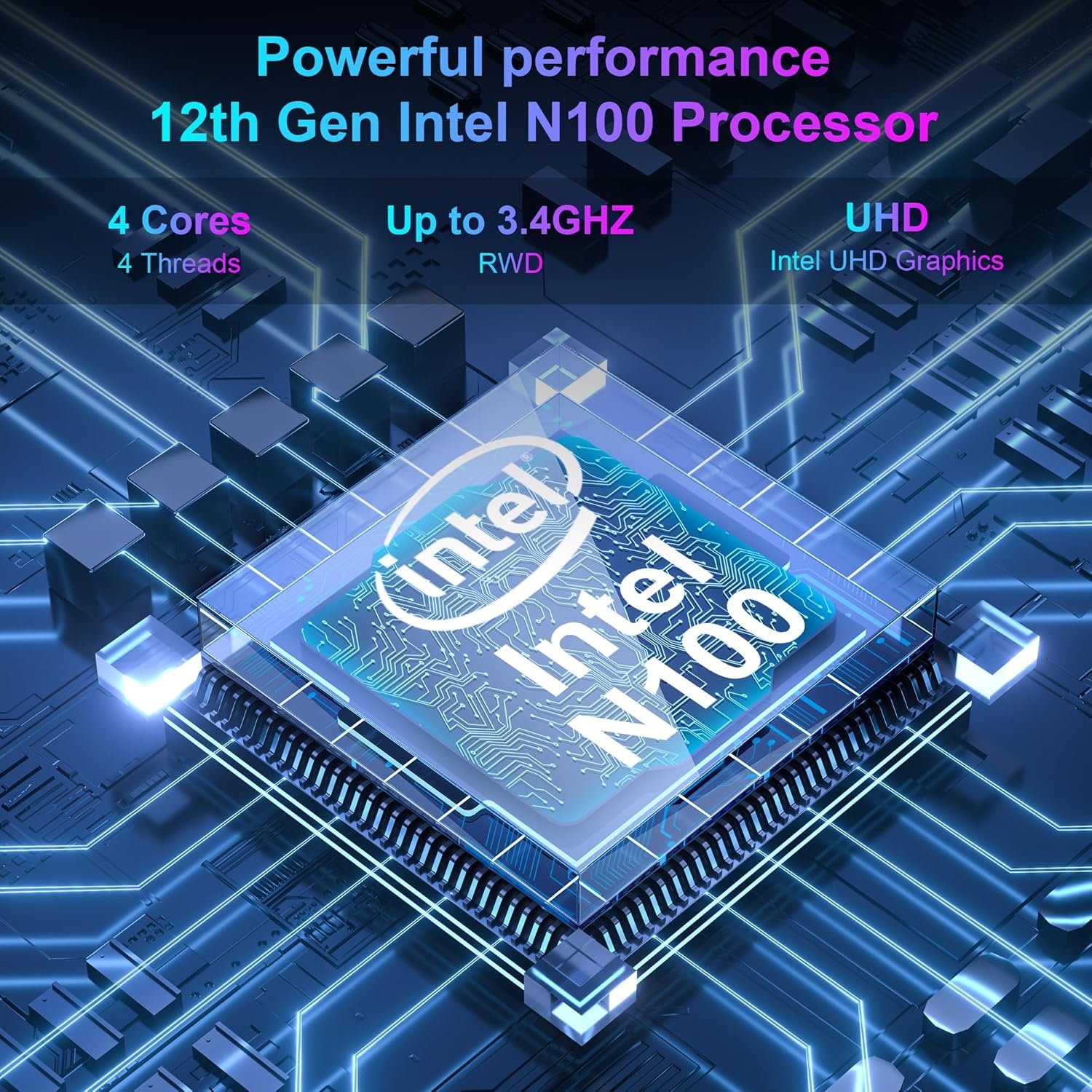 Intel N100 Turbo Performance: 1.8GHz-3.4GHz processor beats Celeron efficiency by 35%. 12GB DDR5 RAM handles 20+ Chrome tabs effortlessly. 512GB SSD + 512GB TF slot, the total storage space can be upgraded to 1TB.