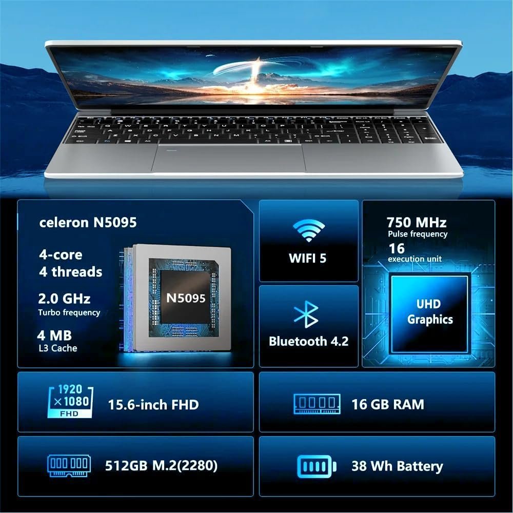 ? Processor & Win 11 Laptops?Win 11 Laptop Computer is powered by the powerful Celeron N5095 CPU with up to 2.9 GHz frequency, which is more powerful and faster than regular processors at base frequency. Delivers incredible responsiveness and doubles performance efficiency. It is pre-installed with Win 11 Pro, a perfect combination of high performance and low power consumption, and can handle all complex tasks such as games, learning, work, entertainment, and Internet access.