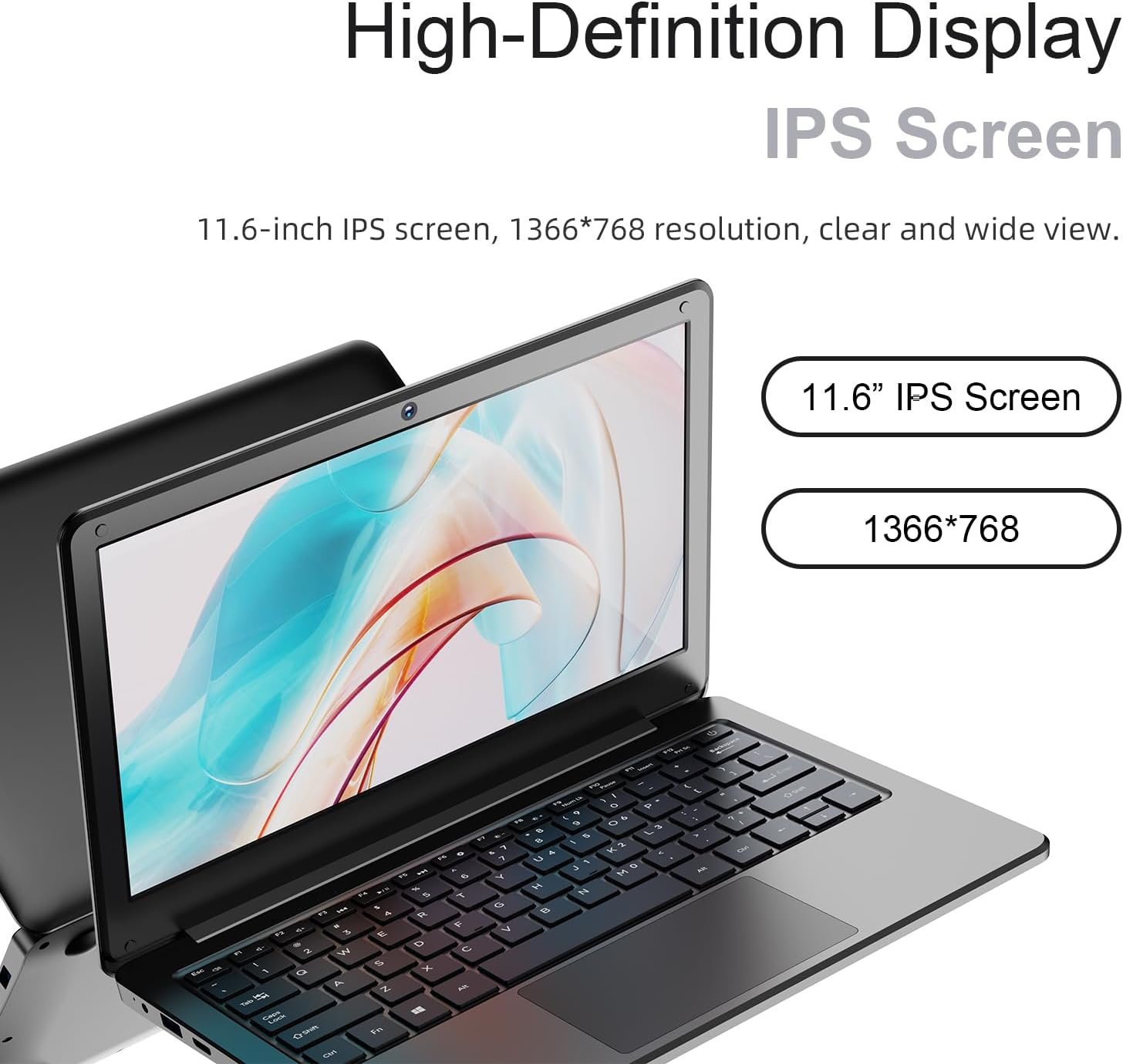 ?11.6″ FHD Screen?This labtop 11.6-inch thin laptop computer display offers a rich viewing experience with its 1366*768 full HD resolution and 16:9 aspect ratio. IPS-Level, Anti-glare, let you feel the brilliant vision, experience the vivid and gorgeous.